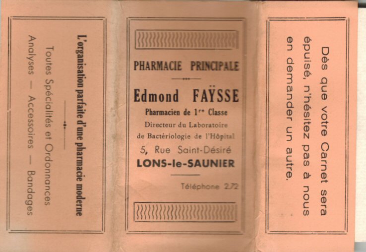 Advertising booklet detailing premises of Pharmacist Edmond Faysse.